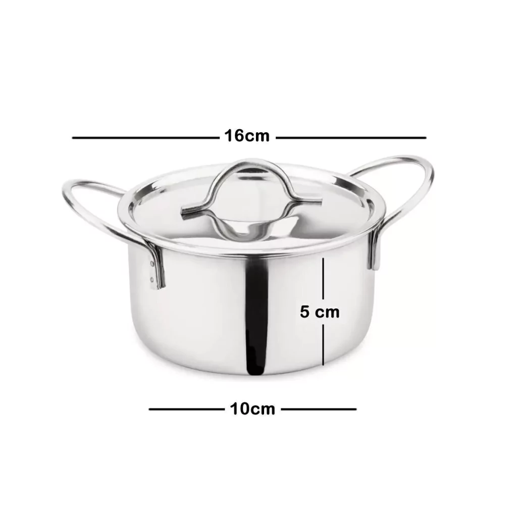 12 Mini Panela Caçarola em inox pequena com tampa e alça