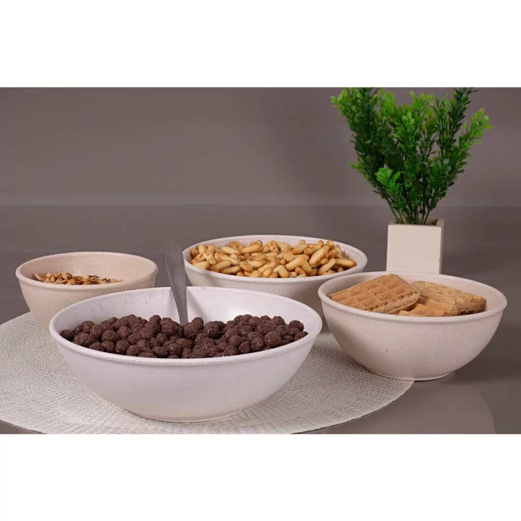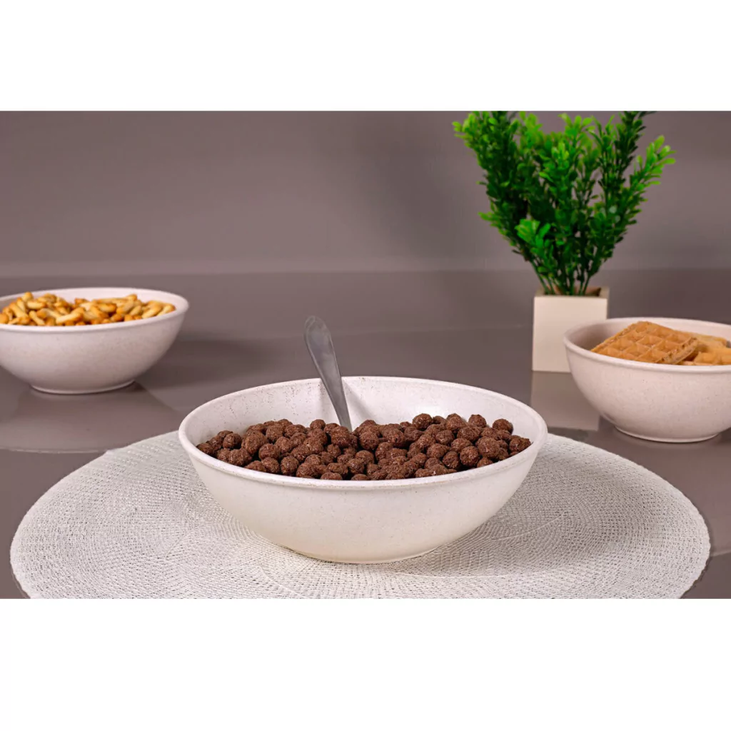Tigela fabricada com matéria-prima sustentável, desenvolvida por meio da mistura entre 69% de materiais provenientes de fontes renováveis (madeira + Polietileno Verde I’m green™) e uma parcela reduzida de polipropileno. É a mais pura versatilidade que um produto pode lhe oferecer. Fundas e resistentes tem infinitas possibilidades de uso: servir pipoca, preparar uma bela salada, acomodar pães para mesa do café da manhã.