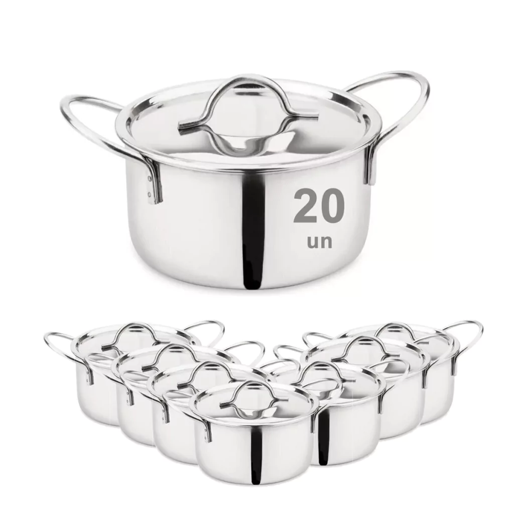 20 Mini Panela Caçarola em inox pequena com tampa e alça