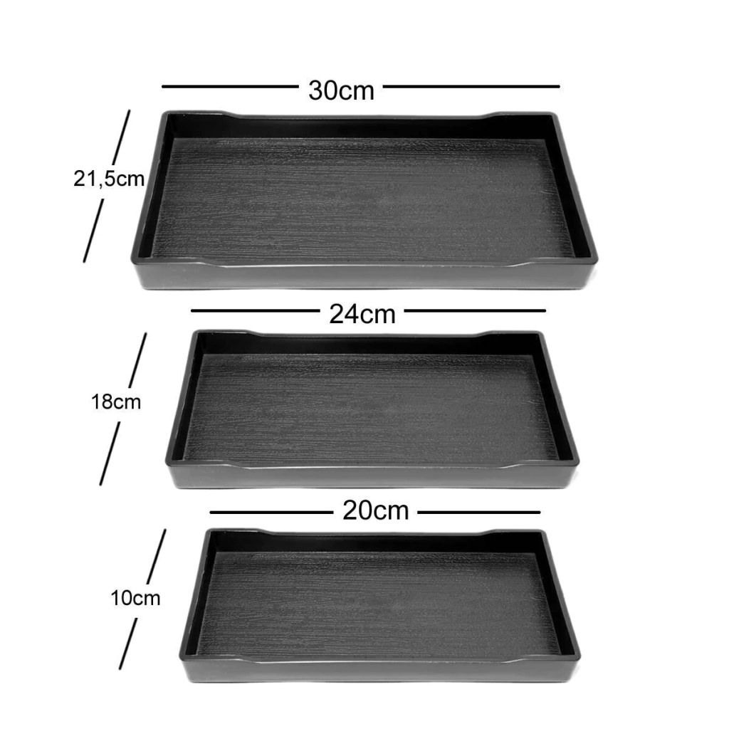 3UN Bandeja Retangular Preta Plástico 3 tamanhos 30cm