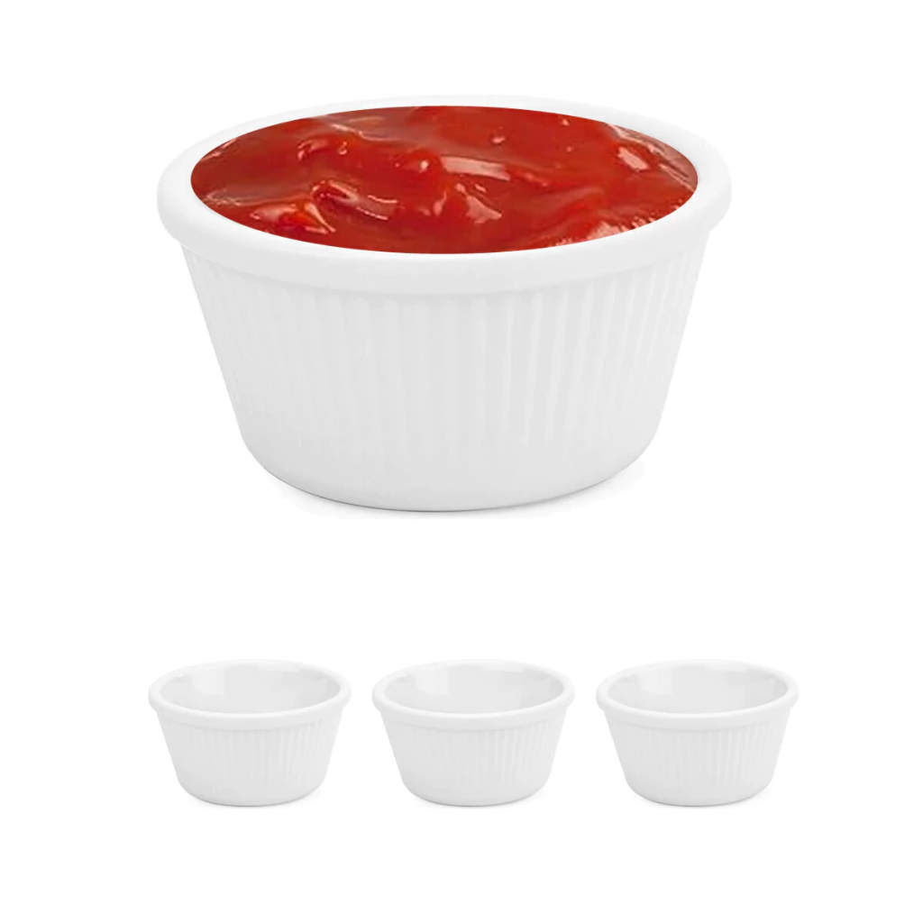As molheiras Ramekins são ideais para servir seus aperitivos com elegância. Cada molheira possui aproximadamente 3 cm de altura e 6,5cm de diâmetro e com uma capacidade de 60ml, perfeita para porções individuais de molhos, patês, pimentas. Fabricadas em melamina de alta qualidade, garantindo durabilidade e um toque sofisticado à sua mesa. Além disso, são aptas para lava-louças e micro-ondas, facilitando a limpeza e o aquecimento. Um produto muito resistente que não quebra com facilidade. Ideal para restaurantes, bares e também para o lar.