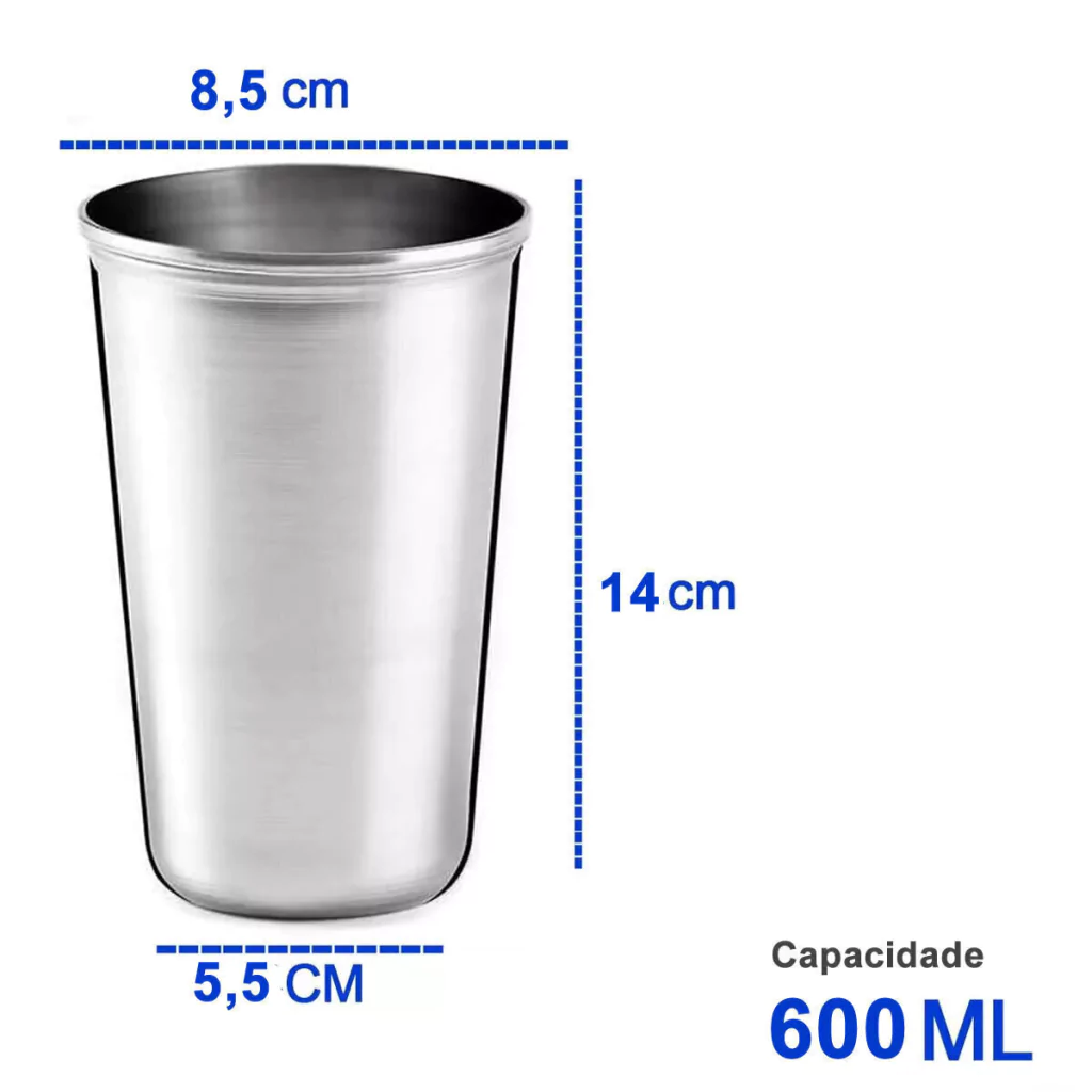 5 Copos Aço Inox Resistente Grande Cerveja Agua Suco 600ml