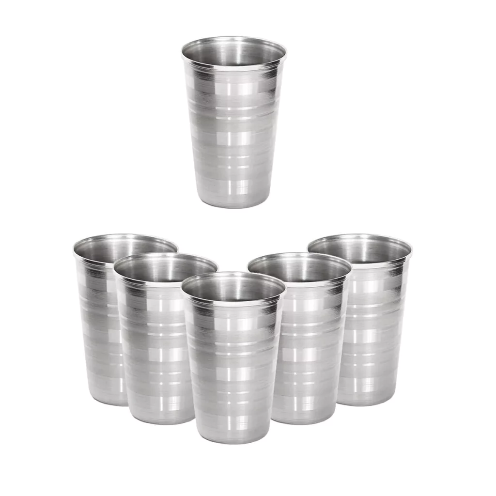 6 Copos De Aço Inox Resistente Grande Cerveja Agua Suco 390ml