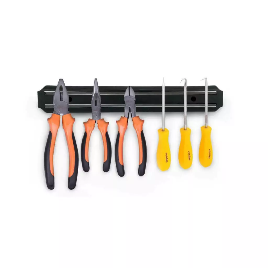 Compacto, resistente e de fácil utilização, composta por dois imãs paralelos que seguram os objetos metálicos fortemente, não permitindo que os objetos caiam. Isso permite a exposição de objetos presos em paredes fazendo com que suas facas, utensílios e suas ferramentas estejam sempre à mão.