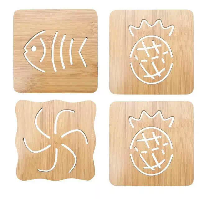 Kit 4 Peças Descanso De Panela Madeira Quadrado DECORADO