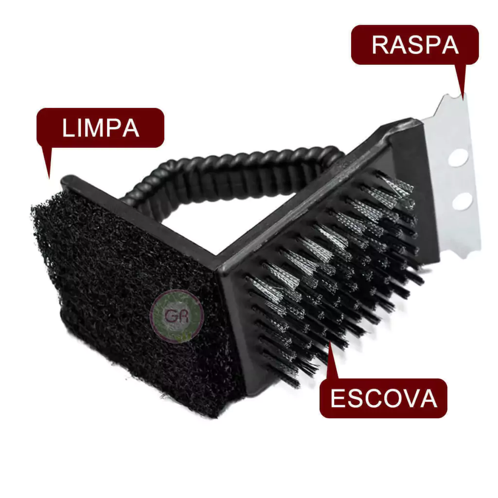 ESCOVA LIMPA CHURRASQUEIRA GRELHA 3X1 RASPA ESCOVA E ESFREGA