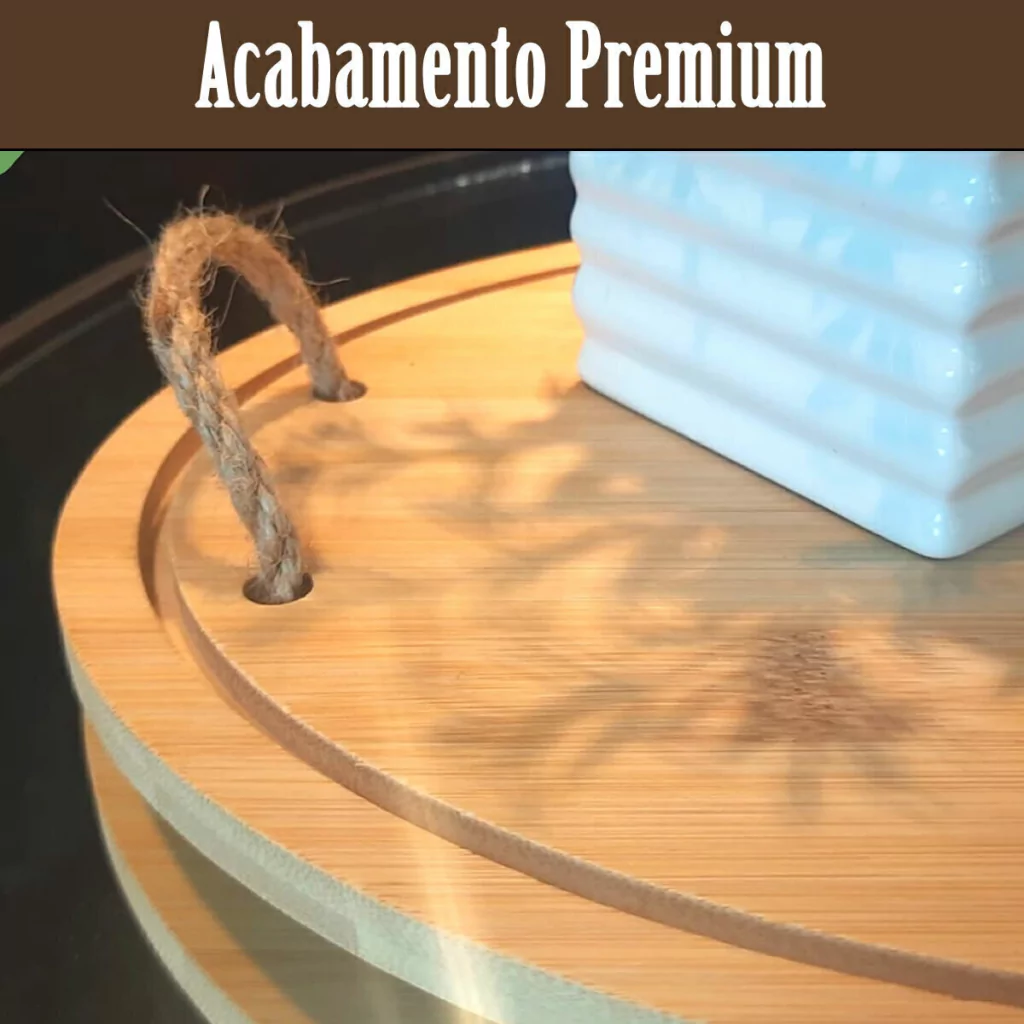 A bandeja é feita de bambu, um material conhecido por sua resistência e durabilidade. Além disso, é ecologicamente correto, tornando-a uma escolha perfeita para aqueles que se preocupam com o meio ambiente. A alça de corda não só aumenta a funcionalidade da bandeja, mas também adiciona um toque rústico ao seu design